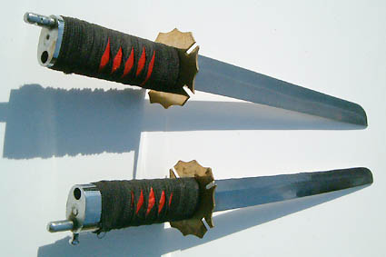 Ok, I got permission to post this. Sorry about the picture, I couldn't find one other than this one. Kunai Knives. (IMG: http://www.naruto-kun.com/images/weapons/Kunai.jpg) Kunai knives are commonly used by ninjas. They are highly dangerous, as they can be used for both throwing as a projectile for far distance attacks, or used for melee attacks in close combat. They are really good weapons for ninjas in particular, who need the manuverability. I know it's not as good as the others, but I thought it would be good to put up.