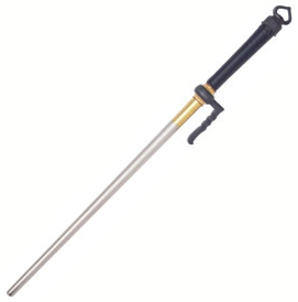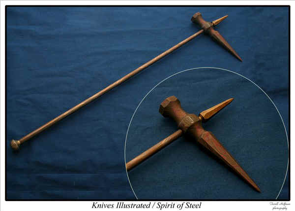 The Yari:(IMG: http://pierrot.jp/title/saiyuki_movie/characters/yari.jpg) The Japanese spear didn't differ largely from that of other countries. During the Civil War Era, spear was the most standard weapon of bushi. The Yumi:The Japanese bow was the main battlefield weapon for the bushi until the 1530's. A typical Japanese bow is 2.3m length, made of bamboo with a string of silk and pine resin. An arrow is made of bamboo and bird feather. Bamboo is the best material for bow in the plant kingdom. Though inferior to modern composite archery bow in penetration and accuracy, it was a deadly weapon, too until the musket was brought from Europe in 17th century Although bowmen were still deadly at close range, they were light skirmishers unsuited to prolonged hand-to-hand combat and were understandably vunerable to a commited attack by cavalry. Consequently they were often deployed behind physical barricades, such as stakes and poles driven into the ground. Katar:(IMG: http://www.antiquearms.co.uk/dagger%20image/katar8332.JPG) A katar, also known as a Bundi dagger, is a type of short punching sword used in Persia and northern India. It is notable for its horizontal hand grip, which results in the blade of the sword sitting above the user's knuckles. Typically the sword was used in close range hand-to-hand combat, effective in armour piercing. The blade was often folded or corrugated for additional strength. "Hooded katars" are katars with a shield extending over the back of the user's hand. Katars ceased being in common use in the 19th century. Sai- (pronounced sigh): (IMG: http://www.uoguelph.ca/~rksiadz/Sai-Round2.jpg) The sai was developed for planting rice or vegetable seeds. It resembles a trident and has central, rounded or octagonal shaped steel blade approximately 16 inches long. On either side of the blade there are two prongs that are wrist guards. Sais can be used for a number of things such as stabbing, slashing, punching, blocking, and even throwing. It is believed that farmers who used the sai would carry three at a time. One sai for each hand and one was kept in the belt to throw if necessary. Legend states a strap of some sort was occasionally tied to the handle so the farmer could retrieve it. Mace/ Morning Star:(IMG: http://www.fisk-knives.com/Mace.jpg) (IMG: http://www.kimball.k12.sd.us/Webpage/Mace.gif) An advance on the club, a mace is a wooden, metal-reinforced, or metal shaft, with a head made of stone, copper, bronze, iron or steel. The head is normally about or slightly thicker than the diameter of the shaft, shaped with flanges, knobs or spikes to allow greater penetration of armour. The length of maces can vary considerably. The maces of foot soldiers were usually quite short (two or three feet). The maces of cavalrymen were longer and better designed for blows from horseback. Two-handed maces could be even larger. One of the earliest images of a mace- or club-like weapon is on the Narmer Palette. Maces were used extensively in the bronze age in the near east. The mace passed out of general use in the iron age, where swords, spears and axes became the dominant weapons. The ancient Romans did not use maces, probably because they had no need for a heavy, armor-smashing weapon. The armies of the Byzantine Empire used maces, especially from horseback. The morning star was a medieval weapon resembling a mace, but with a large spike on the end and smaller spikes around the circumference. It was also known as the godendag (from the German for "good day") and the holy water sprinkler (from its resemblance to the aspergillum sometimes used in the Catholic Mass). It was used by both cavalry and infantry; the horseman's weapon typically had a shorter haft than the footman's, which might be up to six feet long. It came into use in the beginning of the 14th century. The name "morning star" is often erroneously applied to the military flail (also known as the therscol), a similar weapon, but with the head attached by a short chain. Halberd:(IMG: http://www.long-sword.com/catalog/images/5Star/Halberds/20-2067.jpg) Halberds are a two-handed pole weapon that came to prominent use during the 14th and 15th centuries. The word "halberd" comes from the the Dutch "Hellebaard", which literally translates to "Hellbeard". The halberd consists of an axe blade topped with a spike mounted on a long shaft. It often has a hook or thorn on the back side of the axe blade for grappling mounted combatants. The halberd was cheap to produce and very versatile in battle. Its length allowed it to deflect spears and pikes, its point allowed to keep sword-wielding opponents at distance, and the hook would be used to draw armored opponents to the ground. The axe blade was for cutting into unarmed opponents and horses. Halberds were the primary weapons of the early Swiss armies in the 14th century. Later on, the Swiss added pikes to better repel knight attacks, with halberds used for medium distances and short swords. Broad Sword/ Knight sword/ Two-handed sword:(IMG: http://www.historicsupplies.biz/photos/cas%20iberia/mainscas/2034-GT.gif) A two-handed sword, used as a general term, is any large sword that requires two hands to use. Two-handed swords made for combat use are actually quite light, averaging around 2.5 to 3 kilograms, with the heaviest examples reaching 5 kilograms. Even so, with the mass distributed over a length of close to two metres, effective use would have required considerable strength. The swords have hilts mounted side-rings and enlarged cross-guards of up to 12 inches across. Along the blade, some 4-8 inches from the upper gaurd, parrierhaken ("parrying hooks") shaped like lugs or flanges acted as a guard for the ricasso to prevent other weapons from sliding down the blade. These could be used in the attack of an opponent. Gauntlets:A gauntlet is a protective glove and a form of armour used to protect wrist, hand and fingers or the whole arm. Gauntlets exist in many forms, the least pr
