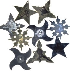 The major varieties are the Bo Shuriken and the Hira Shuriken (throwing blades with multiple points, sometimes called Kurumaken but more commonly known in the West as Throwing Stars, due to their distinctive shape). They have been used by ninja and other samurai. These "throwing stars" usually had only four points, as more than four were considered as being too flashy or difficult to handle.